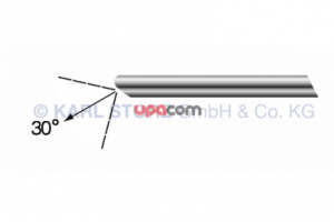 Оптика HOPKINS передне-бокового видения 30°, крупноформатная, диаметр 5 мм, длина 29 см, автоклавируемая, со встроенным оптоволоконным световодом, соединение для оптоволоконного световода смещено на 90°, цветовой код: красный